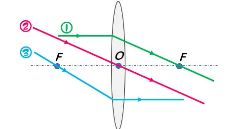 ③ 过焦点的光线,经凸透镜折射后将平行于主光轴