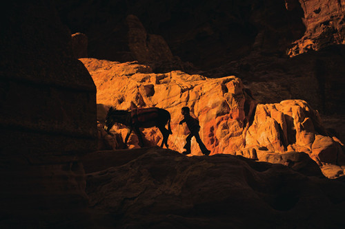 孩子赶着毛驴上山,他们必然会经过这唯一的上山路。因此,只需要提前将镜头对准这必经之路等着他们过来就行了。按快门的时机是孩子两腿跨开的那一刻。这属于比较简单抓住的瞬间,通过一定时间的练习,就会慢慢知道如何把握。复杂一些的瞬间,我们放到后面的实例里一一细说。