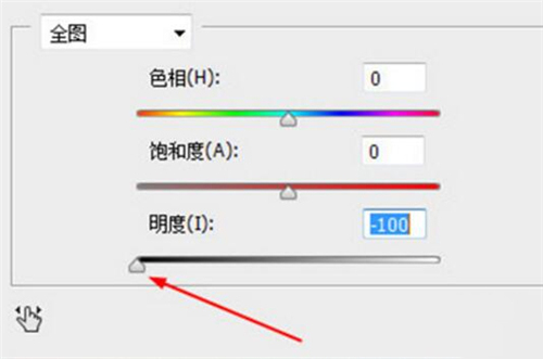 6.在右下角工具栏点击【色相/饱和度】,直接将【明度】调至最低。