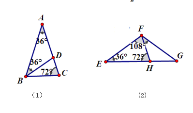 对于图(2)中的△EFG,在底边上取与腰长相等的线段(例如取EH=EF),由此构成的三角形(例如△EFH和△FGH)仍是黄金三角形。