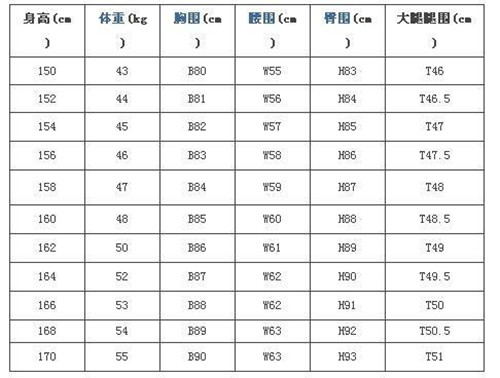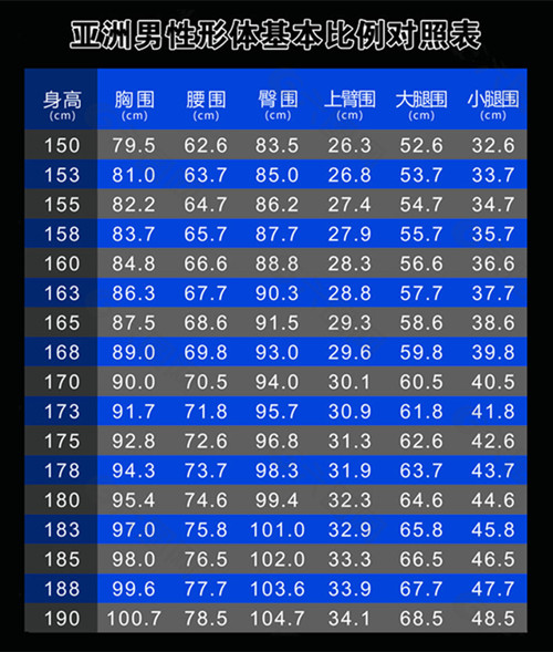 整理了真正优美的黄金比例的体形的尺寸如下表所示: