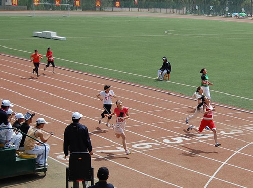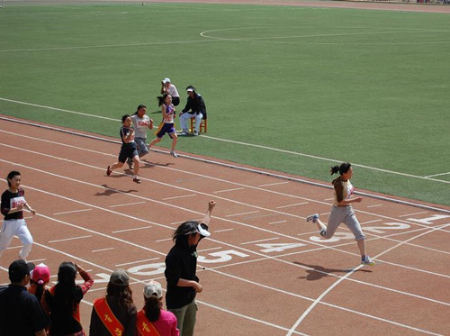 运动员冲刺之后,可以看到运动员的表情和动作时千姿百态,很多摄影记者在此曾拍出过大量好照片,拍摄百米跑许多人往往忽略这个最初效果的环节,等运动员冲线按下快门之后,便把镜头转移到别处去了。结果往往错失了良机。好镜头又是出自比赛之外,也就是说,在脑子里始终要绷紧弦,不要轻易放弃比赛拍摄的任何机会。二百米、四百米跑的拍摄与百米跑大同小异,只是运动员的节奏有所变化,为了与百米有所区别,一般最好选择弯道拍摄。