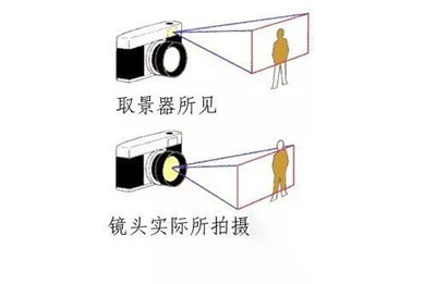 这种取景器与上面的旁轴取景器其实都有一个共同的缺点,就是镜头和取景不在同轴上,所以你取景看到的画面,会与你最终拍摄的画面有范围的出入,拍摄物体距离你越近,这种情况越明显,所以这也是旁轴相机、双反相机在胶片时最终被单反相机取代的原因之一。