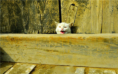 这张照片的主体为猫咪,木板的线条是画面对称的指引线条。