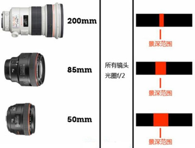 当使用不同焦距段的镜头来拍摄时,焦距的长短对于景深范围的小大也是有影响的。所以为什么出去拍风光时,整个画面都是清晰的,因为大多数拍风光用的广角比较多,如体育摄影师拍出来的照片基本上都是人物清楚,背景虚化;因为他们都是在场外,拿着大长焦进行拍摄。