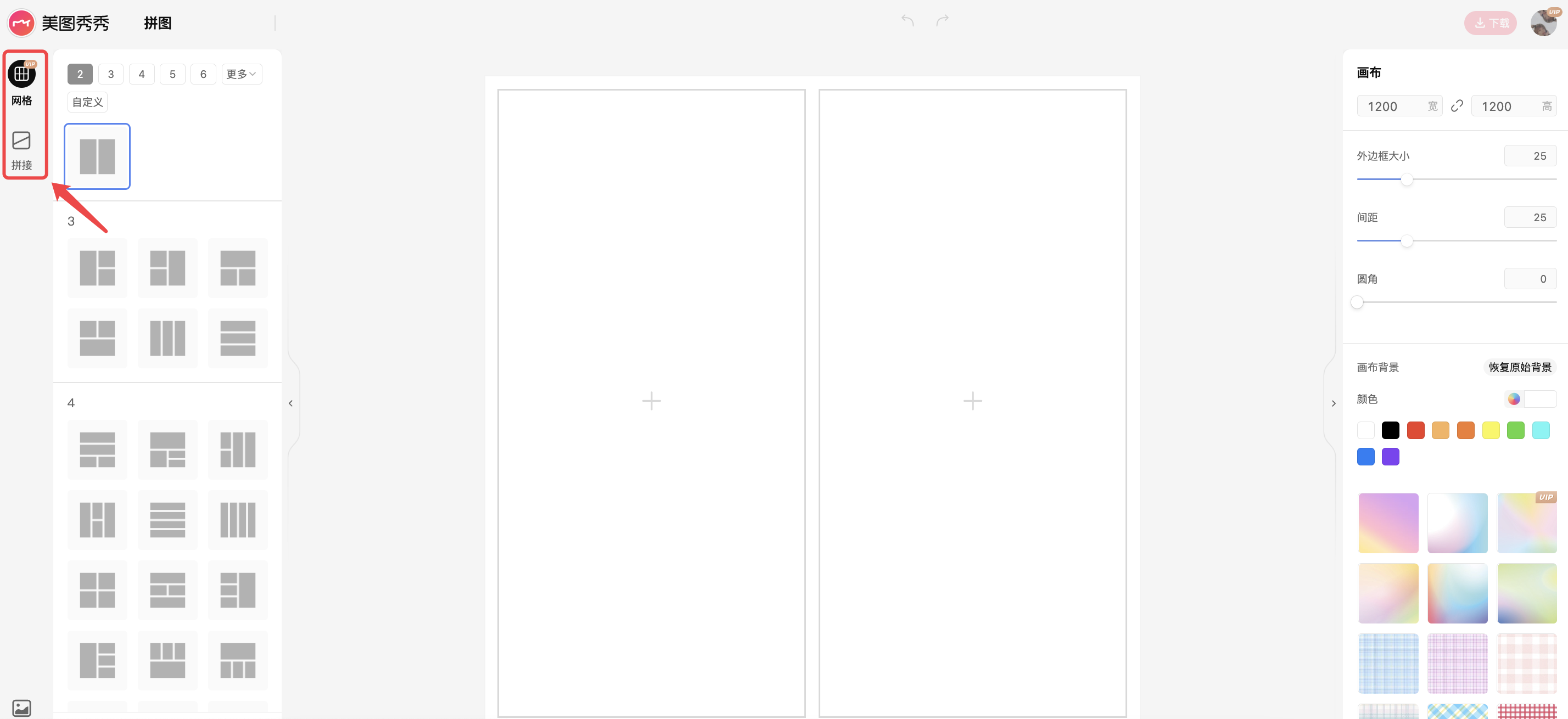 在美图秀秀官网首页 ,找到【拼图】模块,有【网格】和【拼接】两种选择。文章源自:https://www.tuzier.com/兔子摄影网-https://www.tuzier.com/54312.html