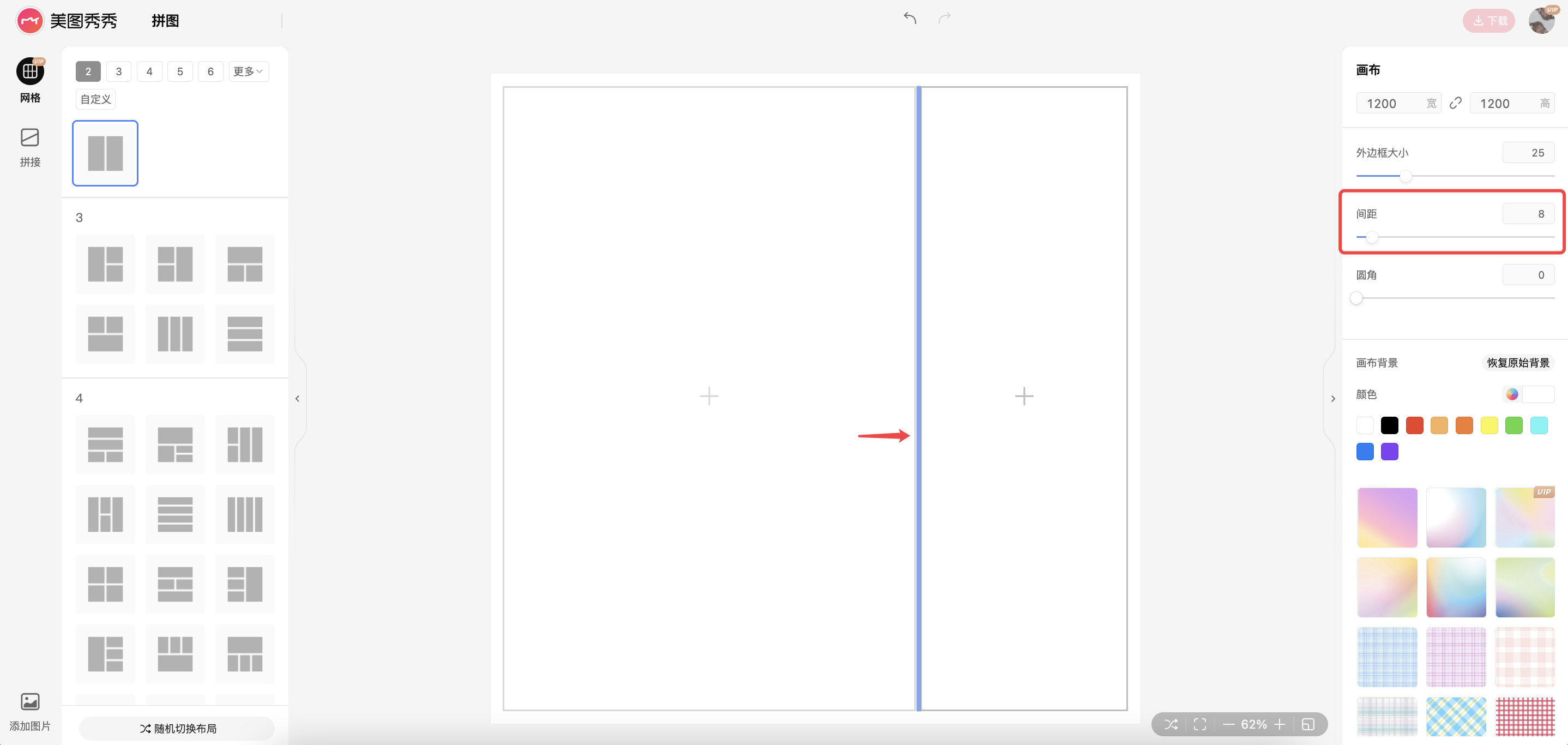 隐藏功能:拼图宫格间距>=4,鼠标放在间距处,出现“↔️”标注后,可自由拉动边框,调整想要的宫格大小哦!文章源自:https://www.tuzier.com/兔子摄影网-https://www.tuzier.com/54312.html