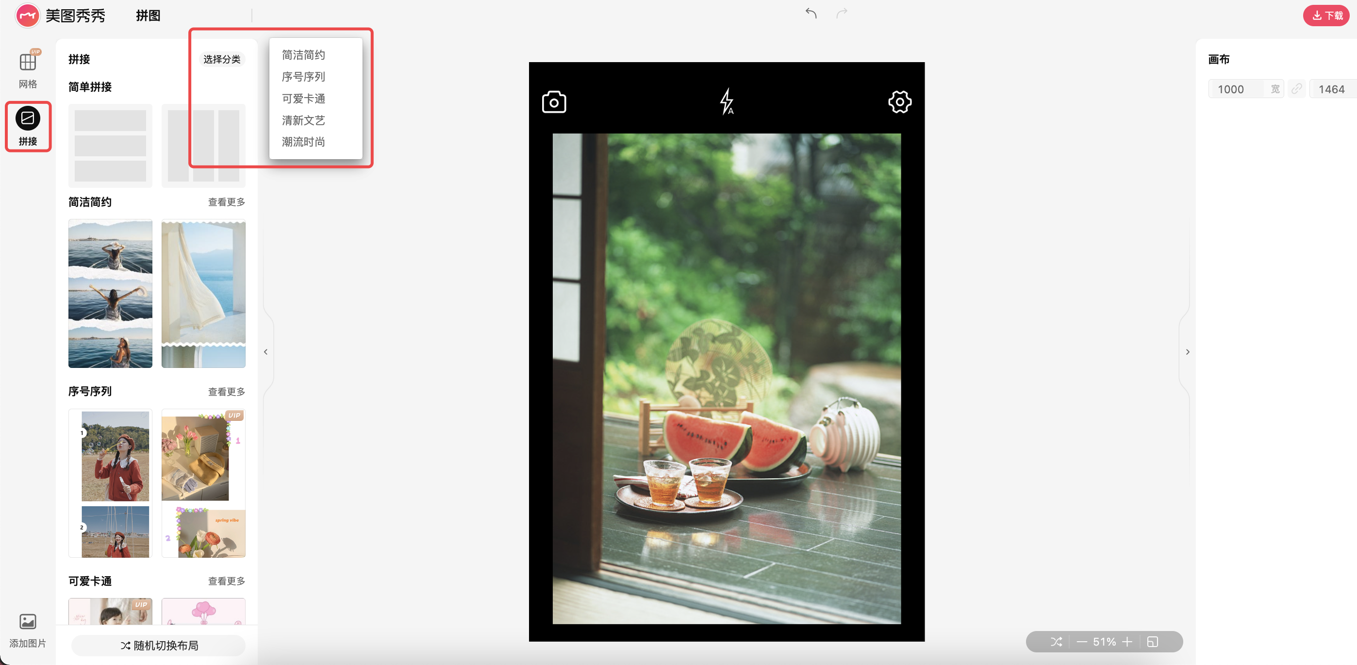 2.【拼接】可以制作海报样式拼图。目前有【简洁简约】【序号序列】【可爱卡通】【清新文艺】【潮流时尚】等海报模板分类,类型丰富、设计精美,同样支持对每一张图片调整大小、增加滤镜。批量导入图片后,可随机切换布局,一键get高级拼图,有手就会!用来发朋友圈、小红书、微博等超级方便!文章源自:https://www.tuzier.com/兔子摄影网-https://www.tuzier.com/54312.html
