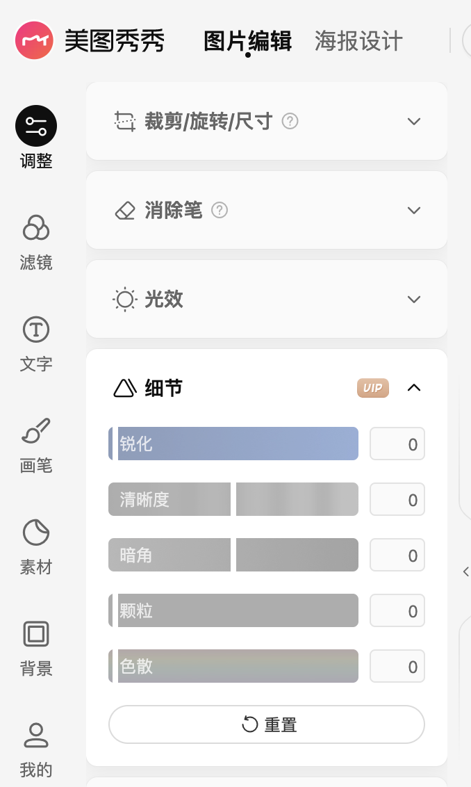 在美图秀秀中打开一张图片,点击功能面板中的【画笔】,选择【消除笔】,调整画笔大小,轻轻涂抹几笔即可。