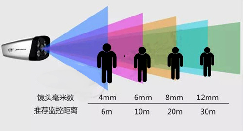 景深大、视角范围广的场所,例如室外环境、围墙等,一般用6-8mm镜头。