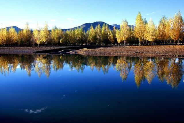 上图的例子是典型的三个板块的例子,如果景物中只有两个板块、或者其中一个板块是重头戏,又怎样构图呢?如下图,水面中的景物及蓝天白云倒影非常丰富和漂亮,这样在构图时就将约2/3的画面给了水面。文章源自:https://www.tuzier.com/兔子摄影网-https://www.tuzier.com/62647.html