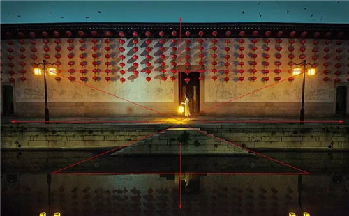 具有平衡、稳定、相对的特点。常用于表现对称的物体、建筑、特殊风格的物体,配合人物的点缀能起到画龙点睛的作用。