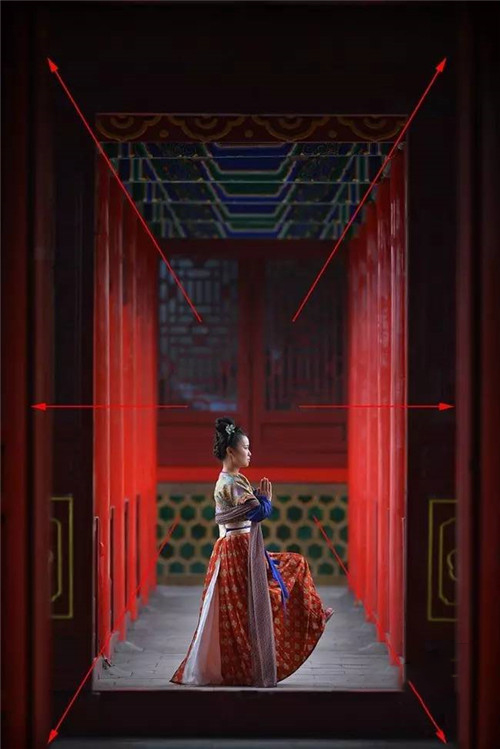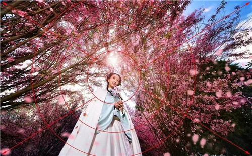 主体处于中心位置,而四周景物呈朝中心集中的构图形式,能将人的视线强烈引向主体中心,并起到聚集的作用。具有突出主体的鲜明特点,但有时也可产生压迫中心,局促沉重的感觉。