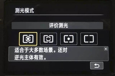 现在的单反相机拥有多种测光模式,一般包括评价测光、中央重点测光、点测光、局部测光。这些测光模式可以通过相机菜单进行调节或者在机身上直接设有调节按钮。