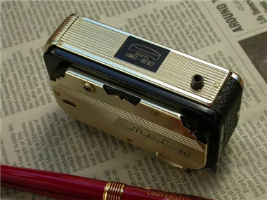 相机的镜头是上面的那颗“纽扣”,手中拿的是快门。快门和镜头之间使用一根很细的快门线连接。这个看上去隐蔽性更高,安全性也就更高。据说这种设计一直沿用至今,广受欢迎。