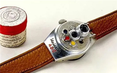 表面看起来是一块手表,实际它是一个易于隐藏的照相机。这个间谍专用的设备生产于1949年,由德国的Steineck ABC公司制造,镜头采用潜望式设计,间谍们可以通过假装看时间来执行任务,偷拍一些情报资料。