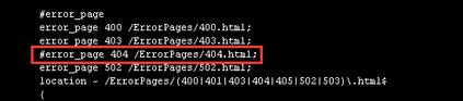 将error_page 404 /404.html这个段注释掉(在前面加入#即可)