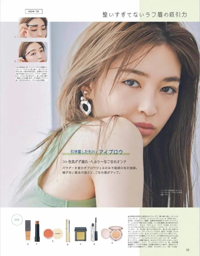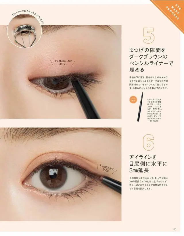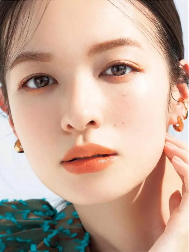 另外,日系裸妆带有一定的哑光效果,因此所选的眼影最好是带些珠光感的颜色,像是带有细闪的橘色就能很好地提亮眼周。同时,还可以用棕色珠光眼影来代替,在眼尾处以及下眼睑处加深,小幅度提亮,也能让你的眼周看起来亮了不少。
