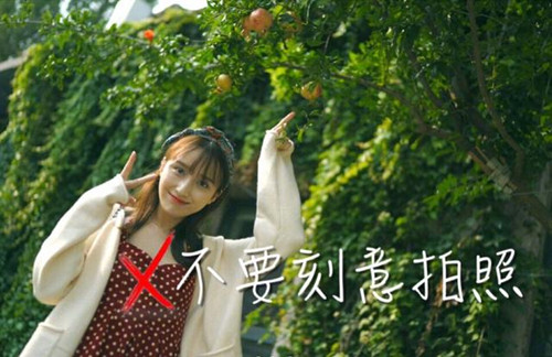 很多女生喜欢刻意的摆各种拍照姿势,这是不大好的,因为太刻意的动作不自然,试着真情流露去抓拍,这样的样子被抓拍会很自然。