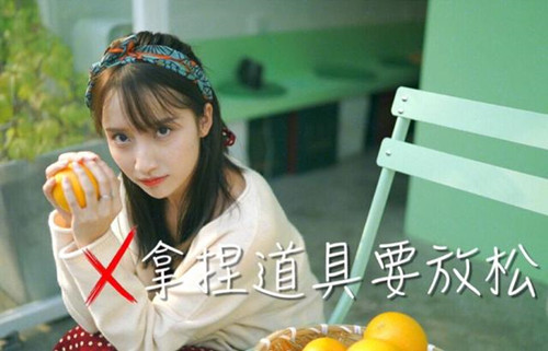 拿着道具的时候,表情不要太夸张,各种表情和状态都要主动做到放松,这样照片会很自然