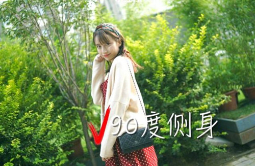 假如你拍正面照的时候看起来有点显胖的话,那就试着90度侧一下身,拍侧身照,这样就能很显瘦了。