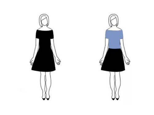 肩型弱化肩宽,实际上就是借助肩线不明显的露肩款来模糊视线,让原本的肩部宽度不能完全展现,就能避免上下宽度差距大的问题。