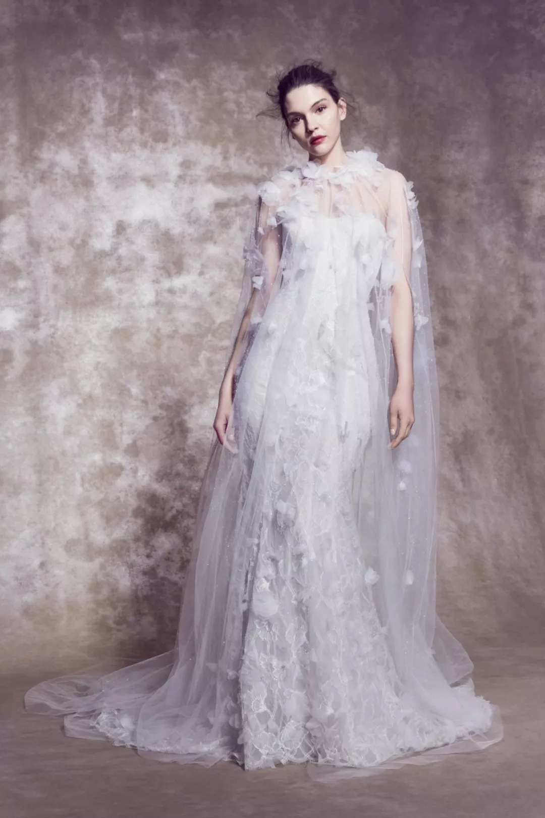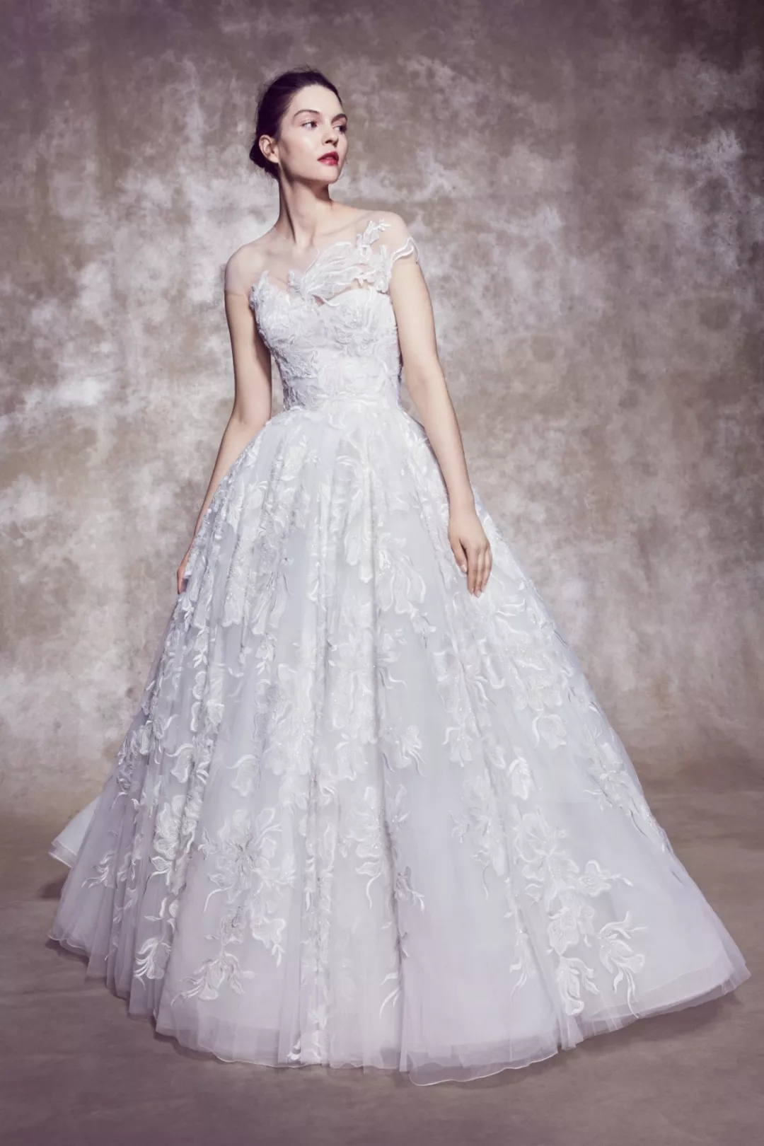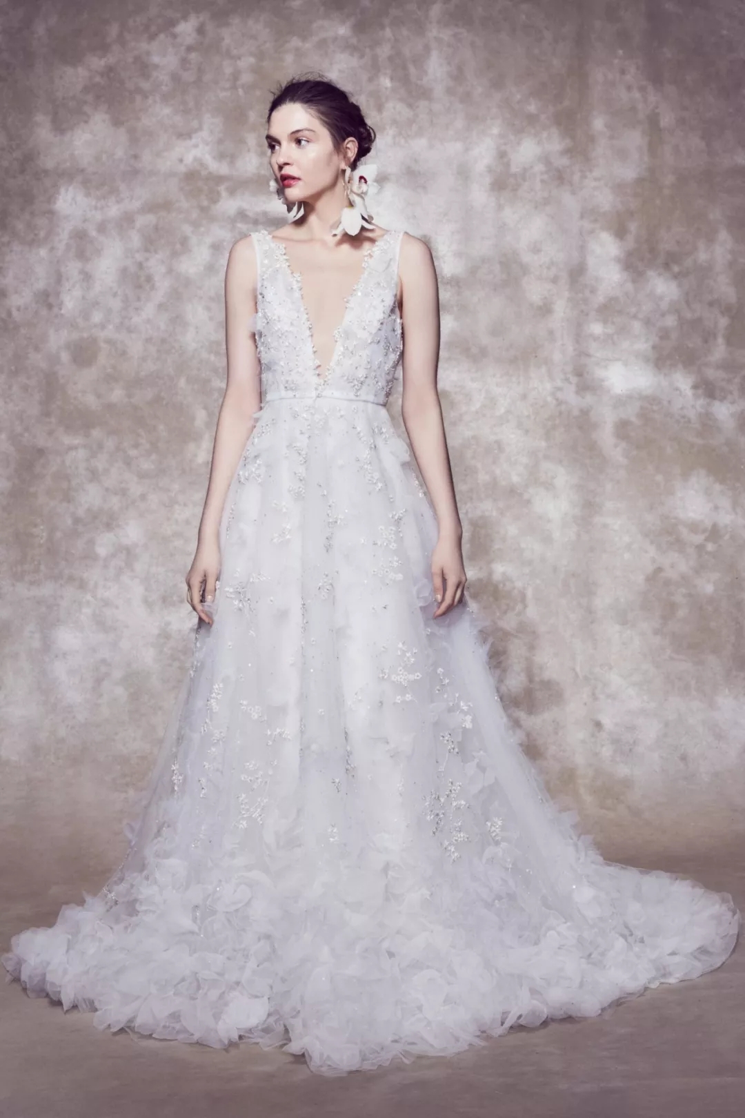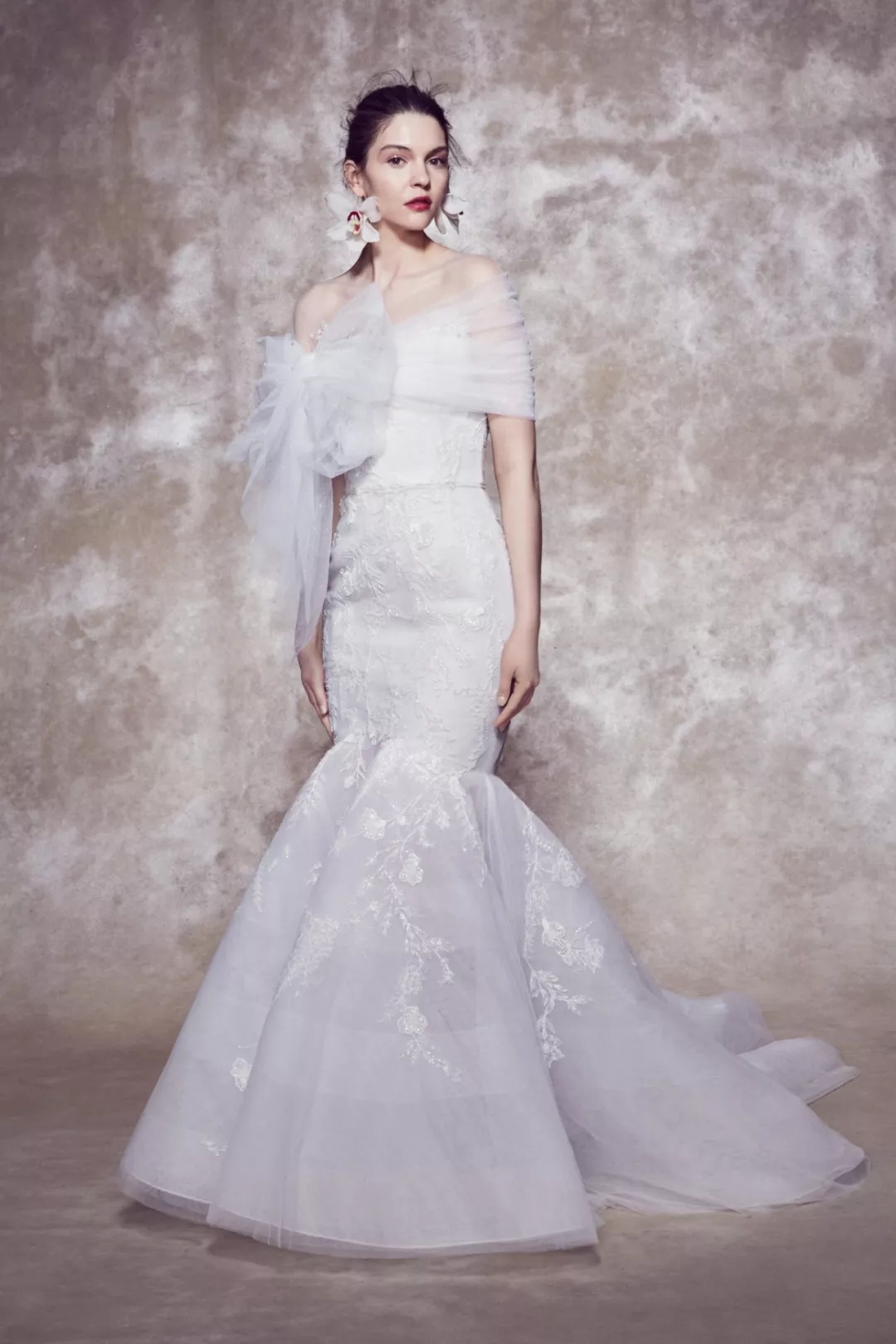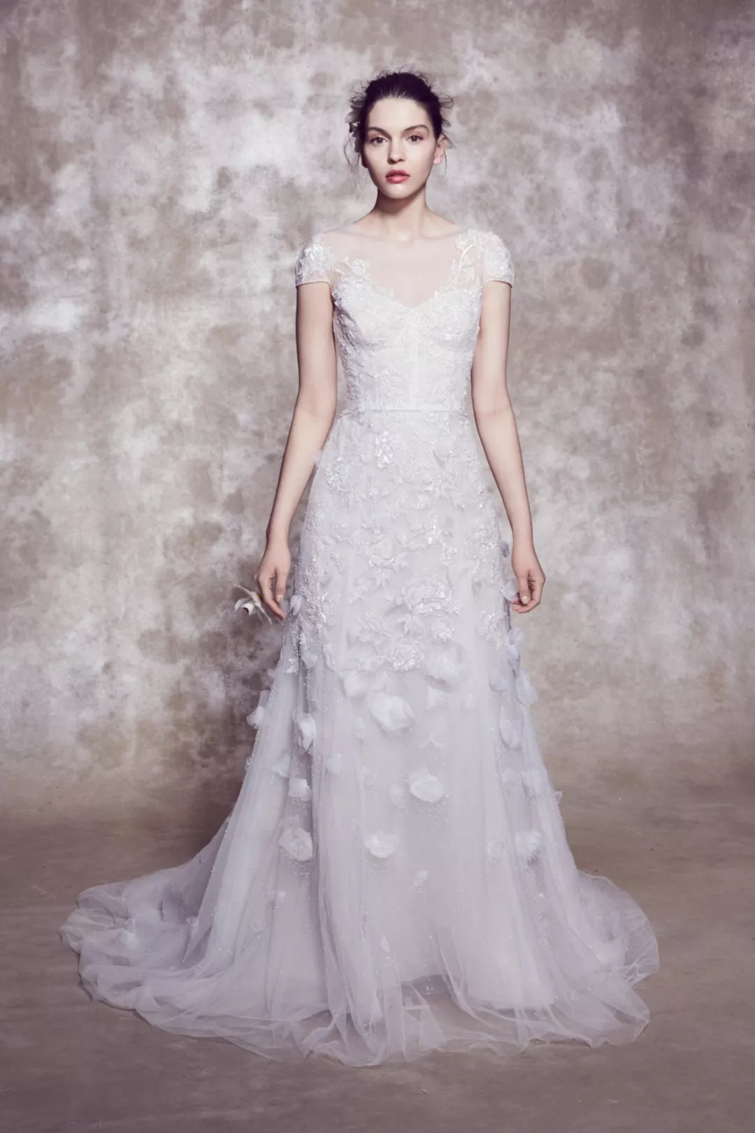 女孩子都希望在自己结婚的那一天,成为全场的焦点和最惊艳的新娘。Marchesa的婚纱绝对满足了女孩子对于婚礼的一切美好幻想。即修身又遮肉,凸显女性曲线的美好,非常温柔美丽(点击图片查看高清大图)。