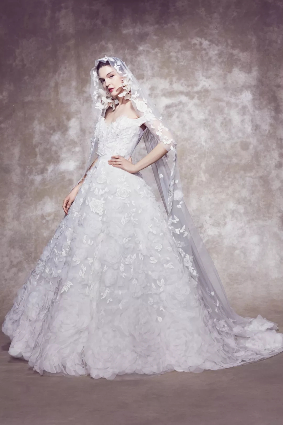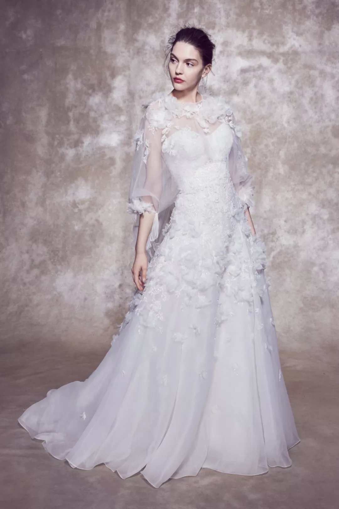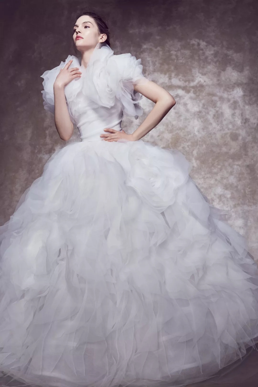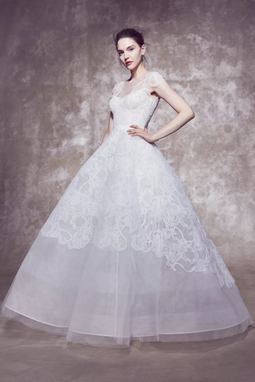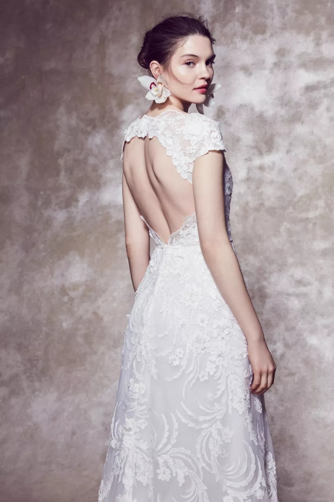 女孩子都希望在自己结婚的那一天,成为全场的焦点和最惊艳的新娘。Marchesa的婚纱绝对满足了女孩子对于婚礼的一切美好幻想。即修身又遮肉,凸显女性曲线的美好,非常温柔美丽(点击图片查看高清大图)。
