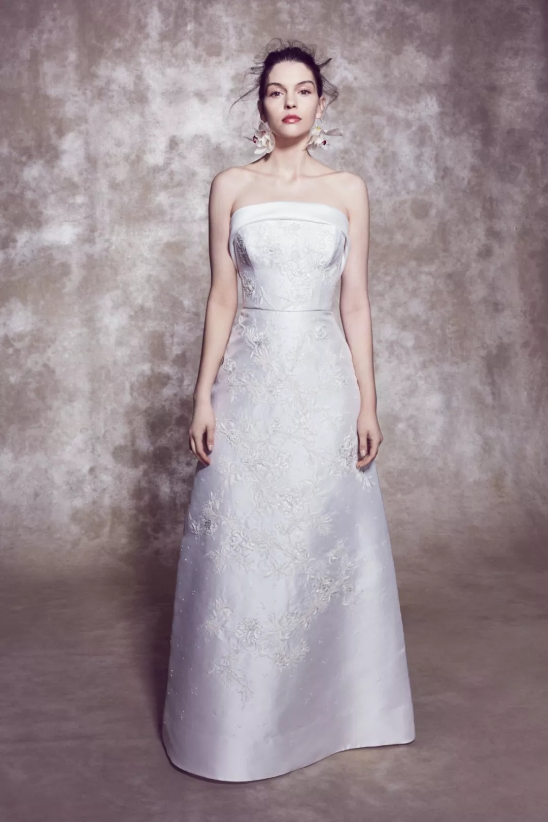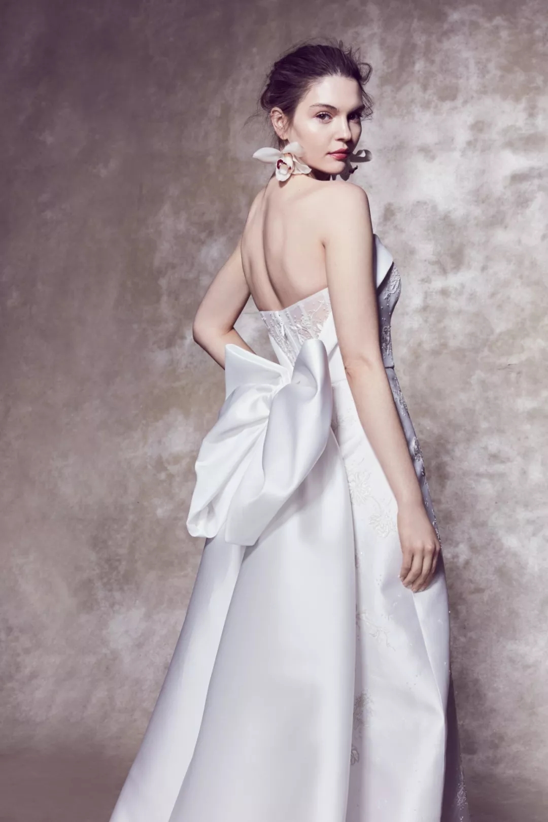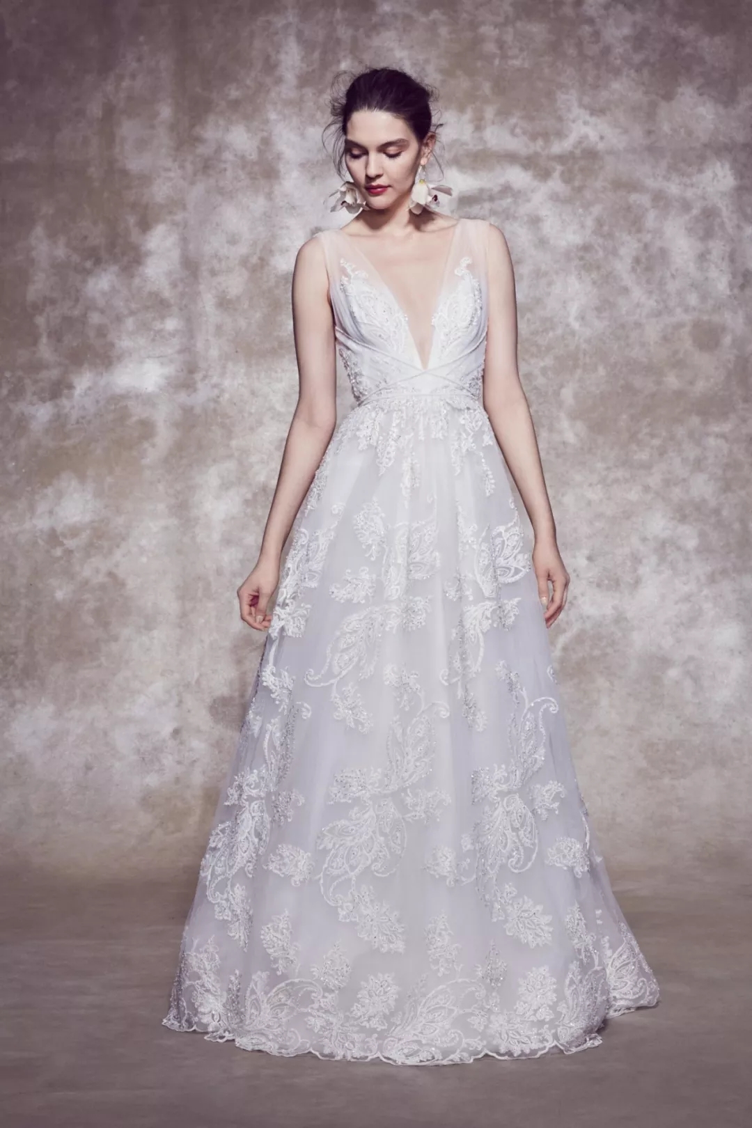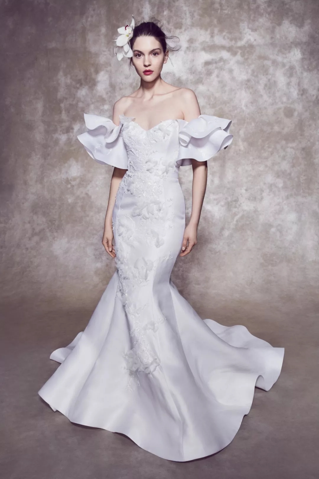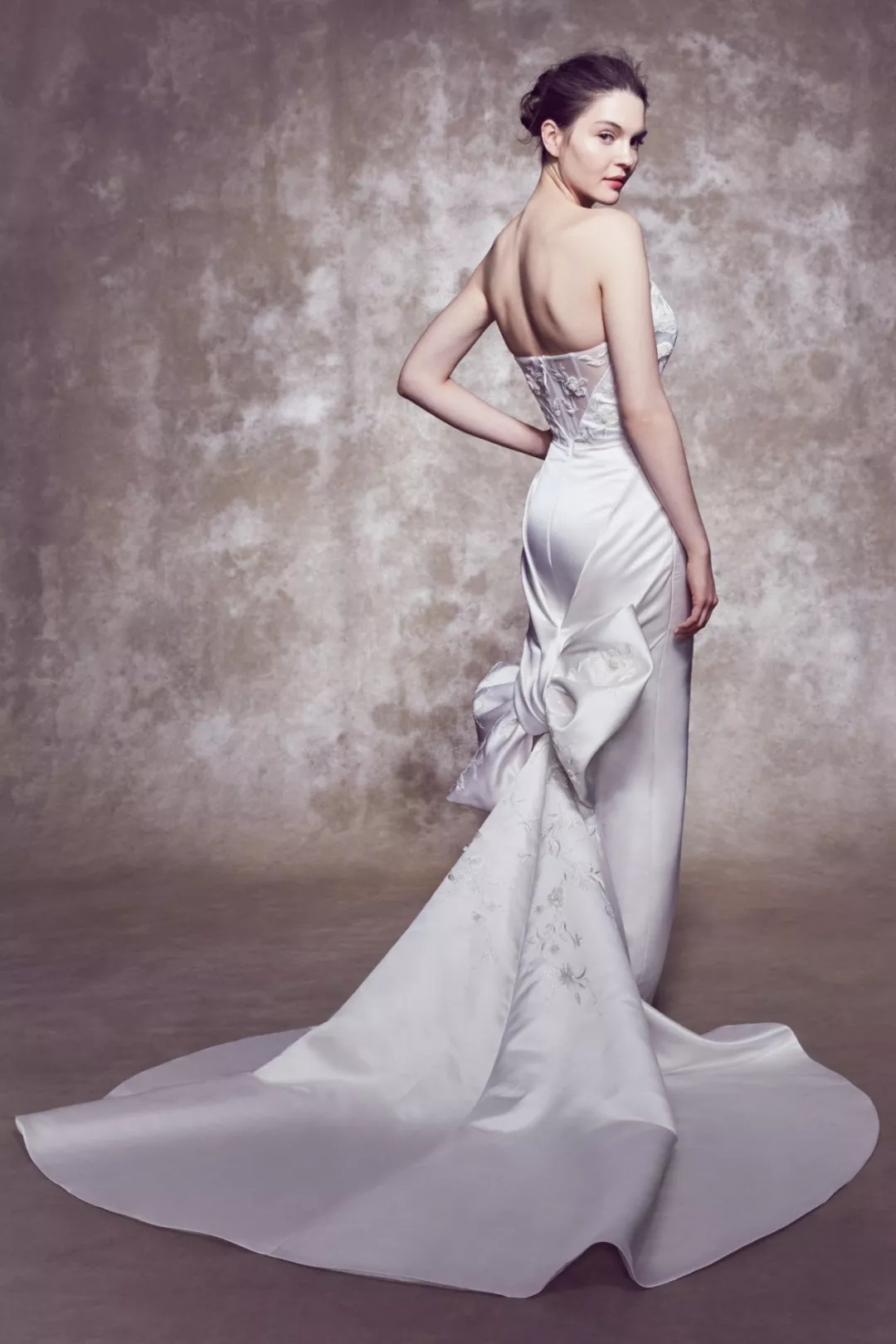 女孩子都希望在自己结婚的那一天,成为全场的焦点和最惊艳的新娘。Marchesa的婚纱绝对满足了女孩子对于婚礼的一切美好幻想。即修身又遮肉,凸显女性曲线的美好,非常温柔美丽(点击图片查看高清大图)。