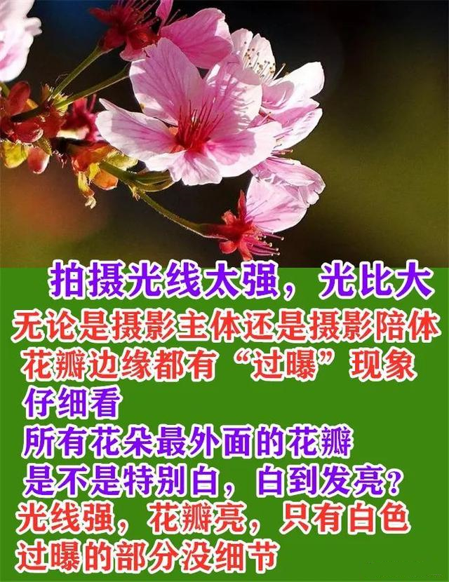 其次,这张照片的拍摄光线太强。所以明暗反差很大,所有花朵的花瓣边缘都有“过曝”的现象。仔细看,花瓣边缘都是“白到发亮”的效果。过曝的部分,花瓣的细节没有了。拍摄花朵特写,必须要有细节支撑的——花蕊要根根分明,花瓣上的纹理要清晰可见。