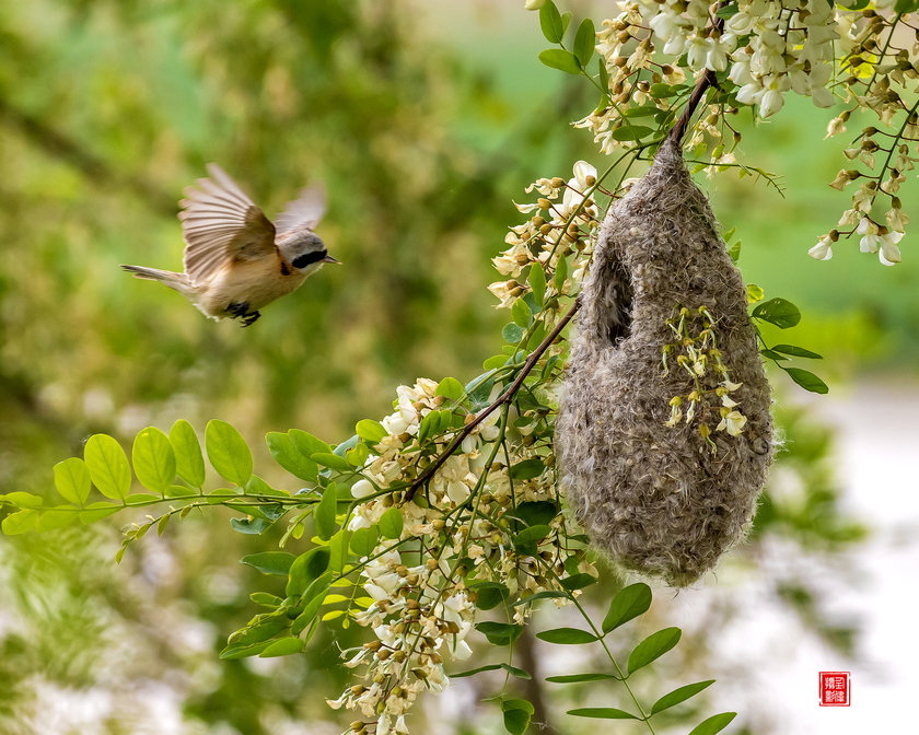 点评:有花有叶正是夏日的特征。在作为背景的小花和树叶里,我们的主角正在进行“房屋建造”。整张图构图整洁,观感很好。同时也给观众带去了一种积极向上的生活态度。