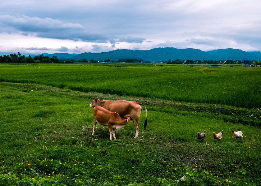 点评:一望无垠的稻田旁站着两头牛,远处的山峰隐约可见,天空也布满了细节,再加上旁边的三只鸡。作者将一些十分常见的元素融入其中,却成为了一幅十分美妙的画卷。文章源自:https://www.tuzier.com/兔子摄影网-https://www.tuzier.com/sheying/44789.html 文章源自:https://www.tuzier.com/兔子摄影网-https://www.tuzier.com/sheying/44789.html