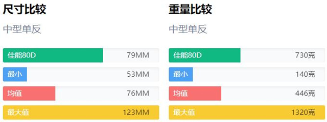 佳能80d重量 730 克(1.61 磅/25.75 盎司) 并具有外部尺寸 139 x 105 x 79 毫米(5.47 x 4.13 x 3.11 英寸). 考虑到单反相机的平均重量为773g,其重量在同类产品中处于平均水平。79mm的厚度,也有平均厚度。文章源自:https://www.tuzier.com/兔子摄影网-https://www.tuzier.com/show/34515.html