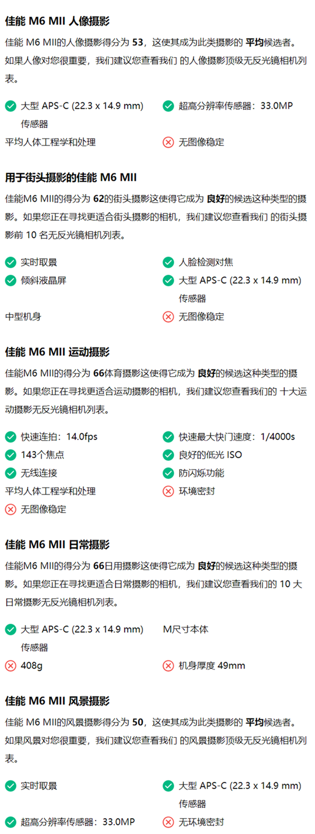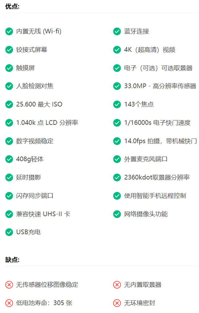 佳能M6 II的优点和缺点