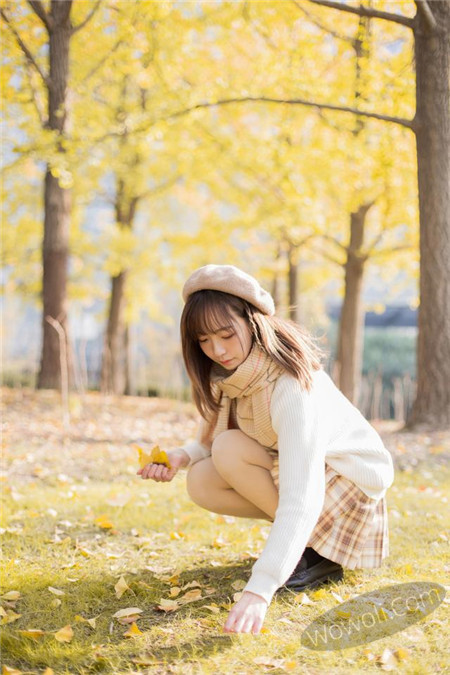 拍腻了全身照,试一下蹲下来,这个拍照姿势,对身高无要求,也不用看镜头,捡一下散落在地面的落叶,拒绝呆板,轻松拍出一张好看照片。
