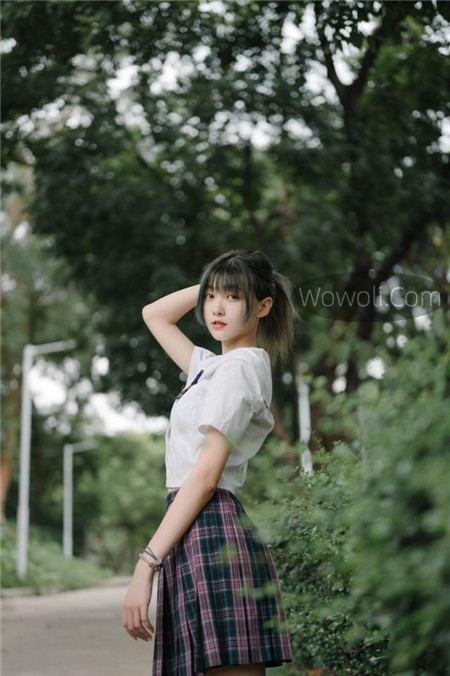 正面拍照显得胖?试试侧身拍照,参考下面女生,低头侧对站,头发自然垂落,两条腿可以交叉,一前一后,双手放在身子后面,拍出的照片,很自然。