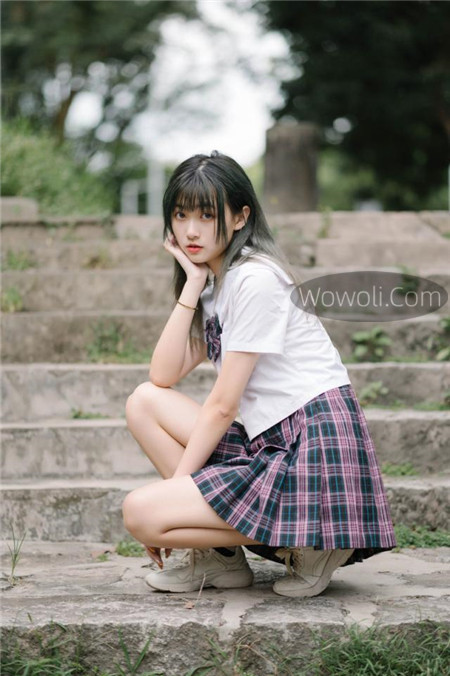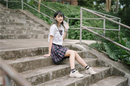 侧对着镜头,找一个阶梯,半蹲着,一只手放在高突的膝盖,手托着脸,随便一蹲,都可以拍出很自然的照片,这个拍照动作,大长腿女生必拍,快试一下吧。